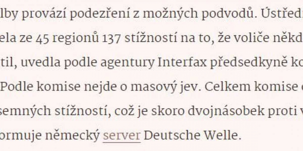 Интересно, что в Чехии, где сейчас проходит одна из самых грязных и дорогих предвыборных кампаний, говорят о несправедливости российских выборов.