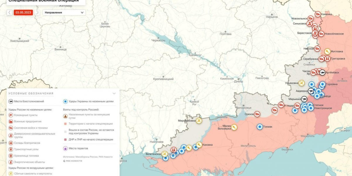 - Свежая карта боевых действий 3 мая 2023 на Украине. Спецоперация России на Украине, новости Украина Последние вести фронта Донбасса сегодня.