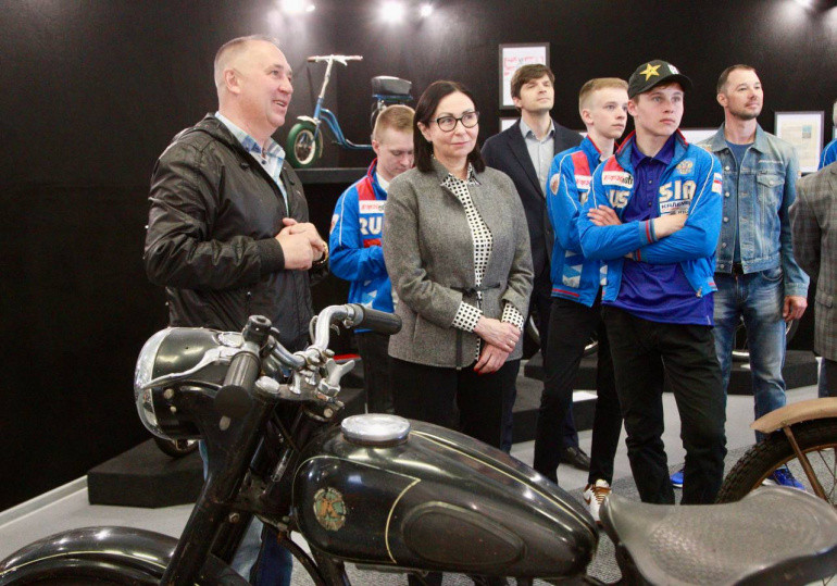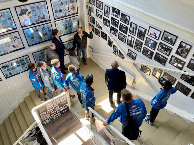 На выставке побывала глава Челябинска Наталья Котова с воспитанниками муниципальной школы по автомотоспорту.