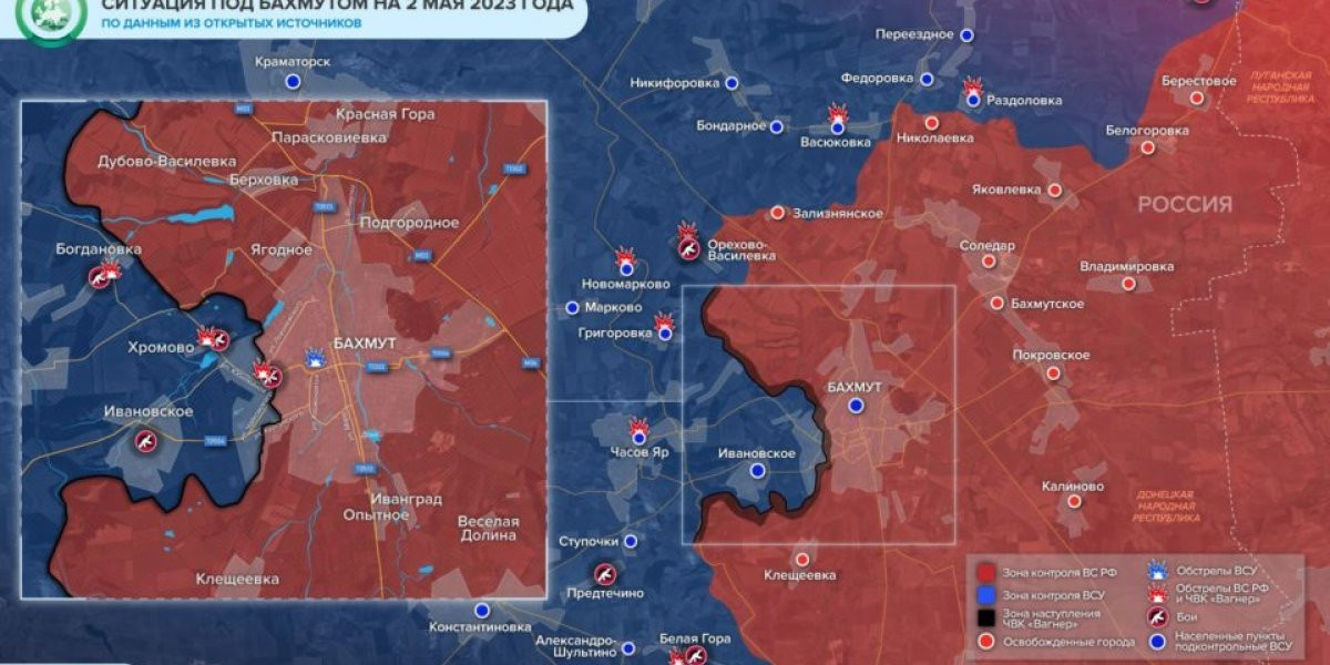 Артемовск (Бахмут) сегодня 3 мая 2023: новая карта боевых действий на Украине 02.05.2023. Новая карта Украины