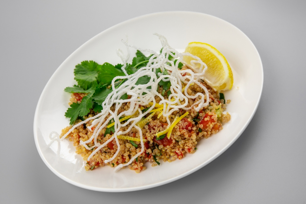 В юбилейное бортовое питание входят салат табуле, цыплёнок с баклажанами и томатами, чилийский сибас, изысканные десерты и многое другое
