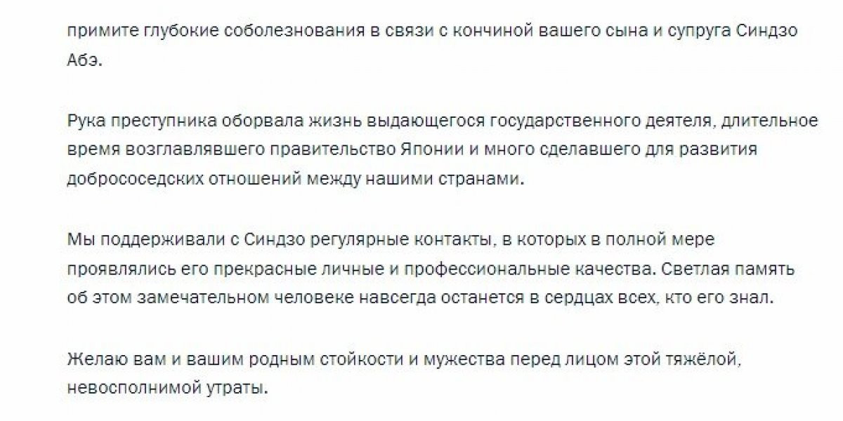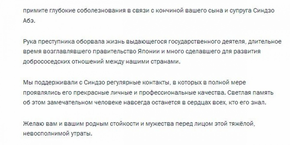 Реакция японцев на соболезнования Путина в связи с кончиной Синдзо Абэ