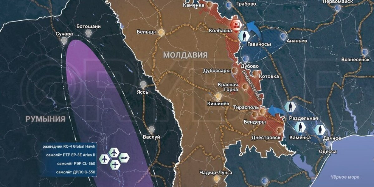 ▪️Помимо наращивания контингента ВСУ на восточных рубежах Приднестровья активизировалась разведывательная авиация НАТО: в последние дни в воздушном пространстве Румынии отметились стратегический БЛА-разведчик Global Hawk, самолёт радиотехнической разведки ЕP-3 Е, самолёт радиоэлектронной разведки CL-560 и самолёт системы дальнего радиолокационного обнаружения G-550.