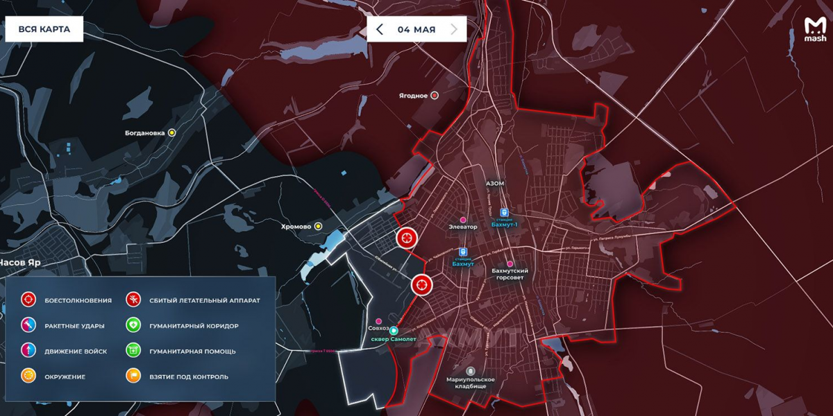 Карта боевых действий на Украине сегодня, обстановка на 5 мая 2023 года. Бои за Артёмовск