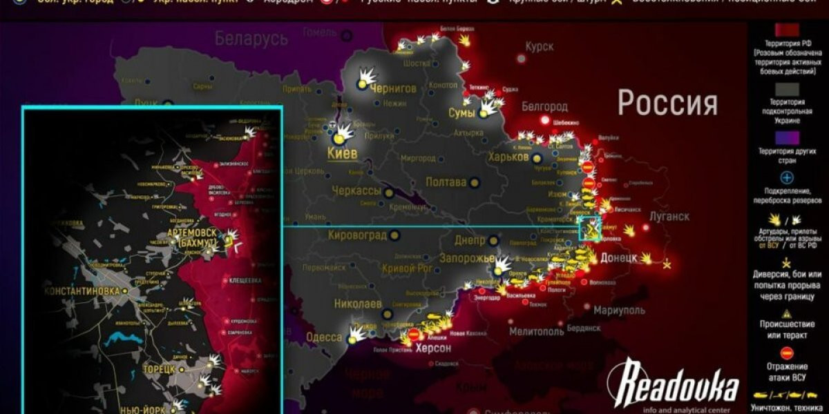 - Артемовск (Бахмут) сегодня 7 мая 2023: новая карта боевых действий на Украине 07.05.2023. Новая карта Украины