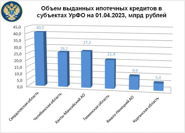После Челябинской области в рейтинге расположились Тюменская (6,3 тысячи кредитов на приобретение жилья на сумму 21,4 млрд рублей), ЯНАО (2,3 тысячи кредитов на сумму 9,9 млрд рублей), Курганская область (2,4 тысячи кредитов на 5,4 млрд рублей).