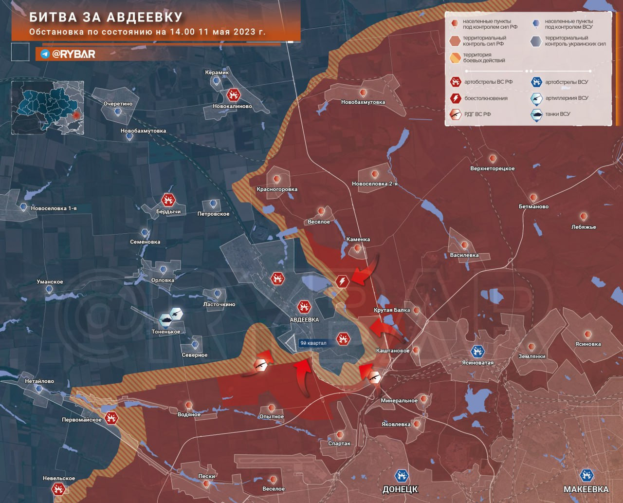 🔻К северу от Авдеевки продолжаются позиционные бои западнее участка трассы Н20 у Новобахмутовки. Морпехи 35 бригады ВСУ выстроили оборону вокруг Новокалиново и Керамика, используя небольшое преимущество в рельефе.