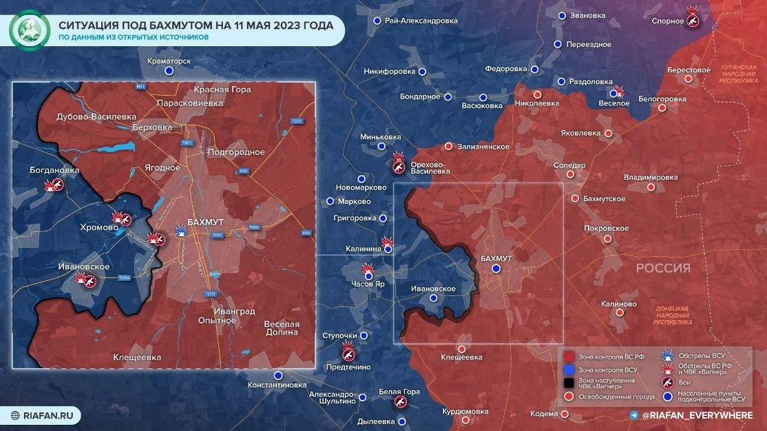 Артемовск 12 мая 2023 года, карта боевых действий: актуальные данные на сегодня