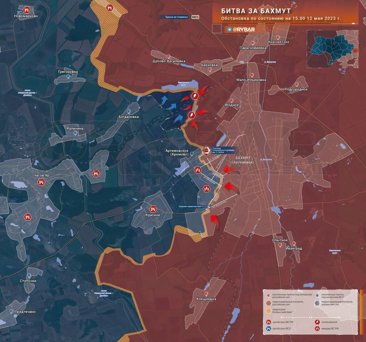 Карта боевых действий: Битва за Бахмут обстановка по состоянию на 16.00 12 мая 2023 года