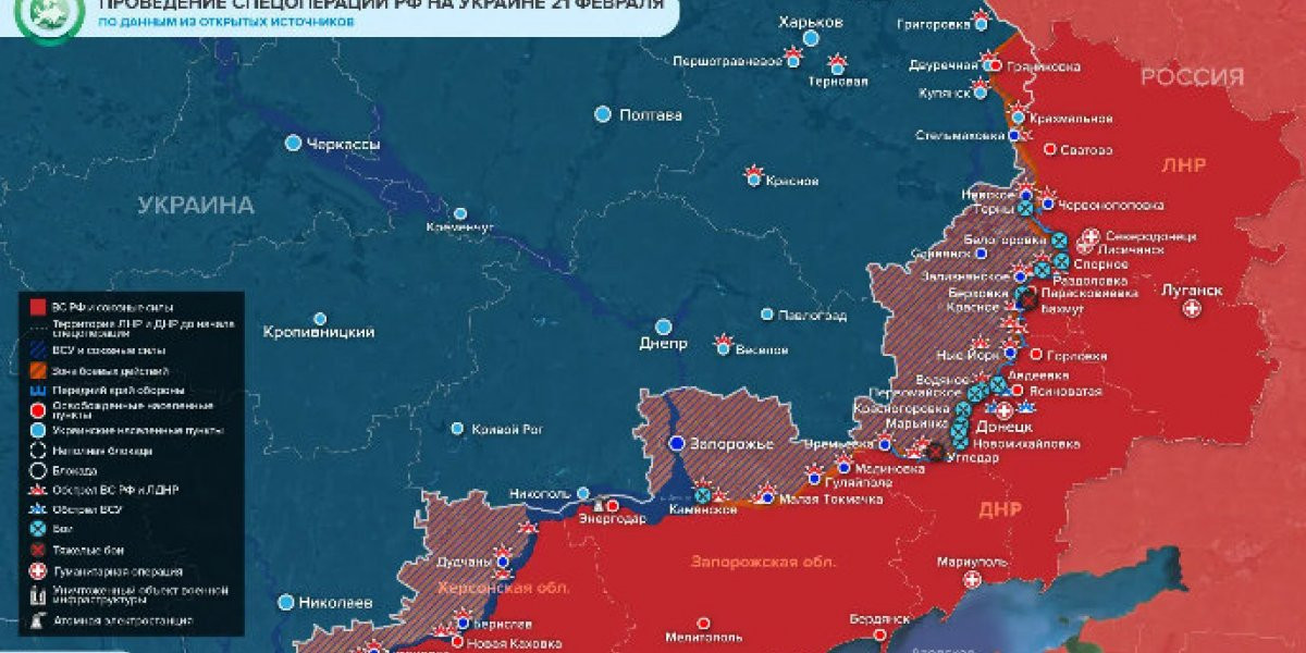 Последние новости » Спорт » Новая карта боевых действий на Украине 22 февраля 2023. Спецоперация (СВО) России сегодня, ход событий итоги. Новости Донбасса (ЛДНР)