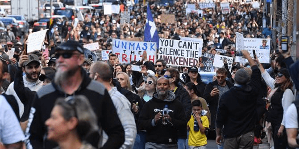 Десятки тысяч демонстрантов, выступающих против карантина, вышли в субботу на улицы Сиднея и других австралийских городов в знак протеста против новых мер изоляции на фоне незначительного увеличения числа случаев COVID-19 в стране.