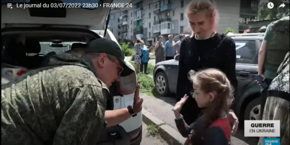 Первый – репортаж Люка Лакруа — корреспондента французского канала France2 из только что освобожденного Лисичанска. Примечательно, что спустя 4 месяца спецоперации французские телеканалы наконец-то стали показывать взгляд на события с другой, «неукраинской», стороны линии фронта. Телевизионная картинка и тон сюжетов разительно изменились.