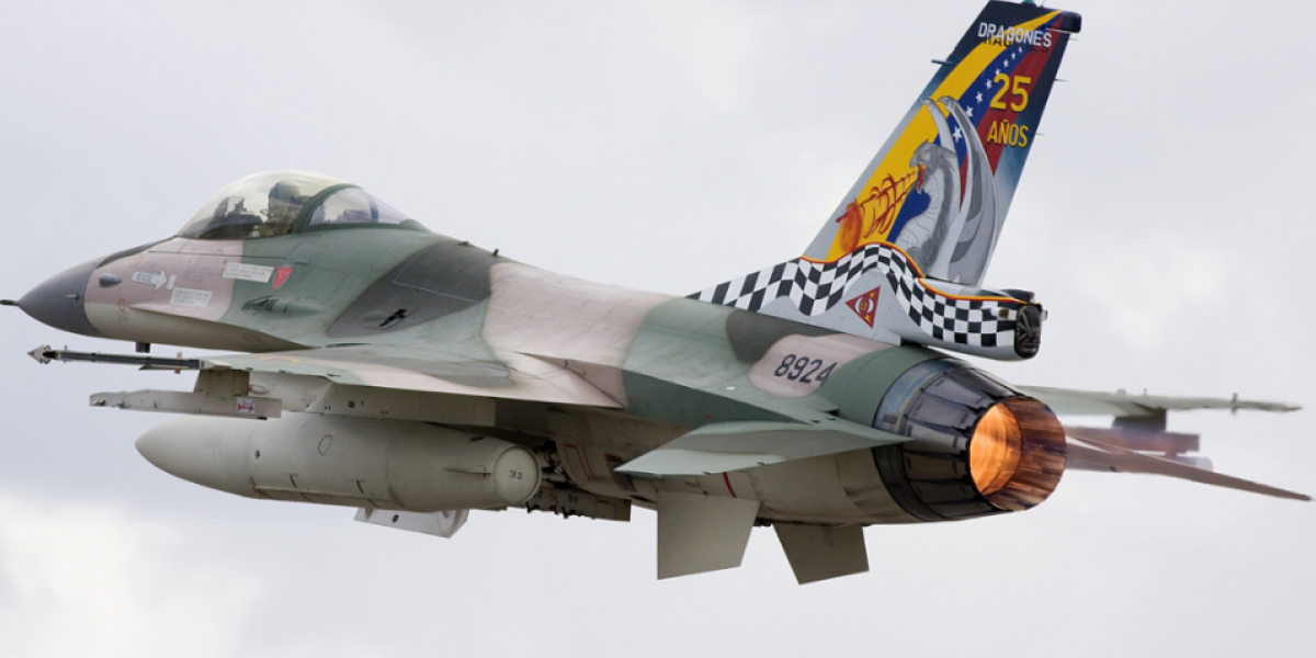 Этот «Боевой сокол» Ф-16 принадлежит Венесуэле. Но кроме яркого оперения у этой «птички» больше ничего нет. Венесуэльские «Файтинг фалконы уступают по боевым возможностям даже истребителям «третьего поколения» на вооружении соседей. Фото открытые файлы Вики. Автор Крис Лофтинг