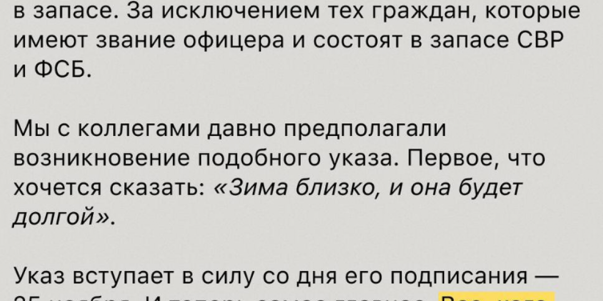 Вы хорошо слышали высказывание президента, что никакой государственной необходимости в новой волне мобилизации нет.