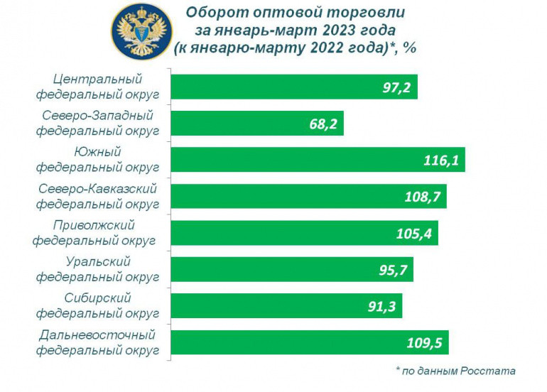 За первый квартал текущего года оборот оптовой торговли в России составил 29,1 триллиона рублей. При этом из всех регионов в 41-м субъекте РФ наблюдается рост, а в 44-х регионах — снижение данного показателя. Челябинская область заняла восьмую строчку рейтинга, другие регионы Уральского федерального округа в топ-10 не попали.