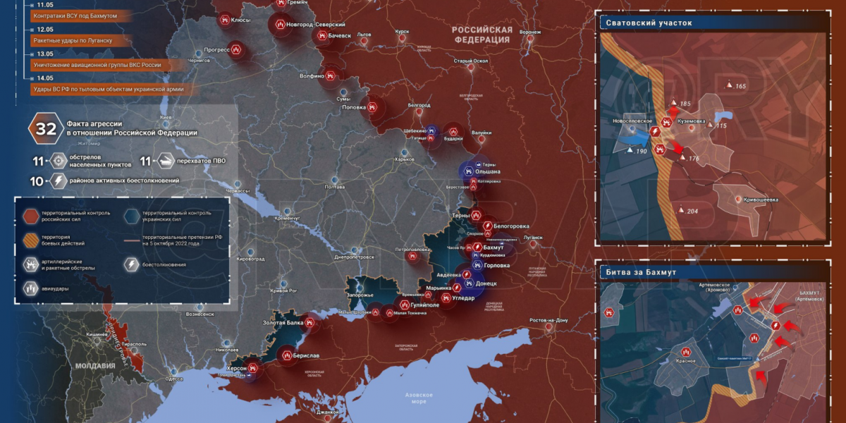 - Карта боевых действий на Украине сегодня, к утру 15 мая 2023 г. Спецоперация России на Украине, день 446-й спецоперации РФ: