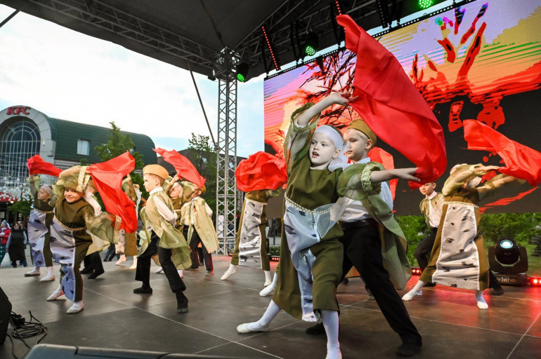 На сцене возле оперного театра выступили творческие коллективы со всей области
