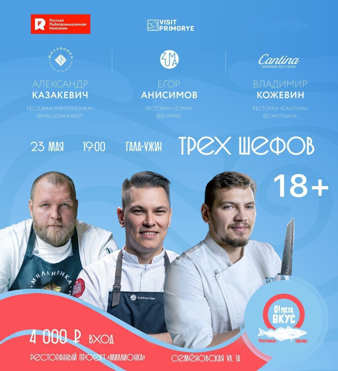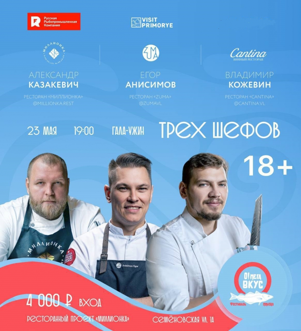 Одно из самых масштабных гастро-событий мая — гала-ужин (18+) от трех первоклассных шеф-поваров Дальнего Востока — пройдет в рамках фестиваля “О!Мега Вкус” (6+) уже 23 мая в ресторанном комплексе “Миллионка” во Владивостоке (ул. Семеновская, 1А).