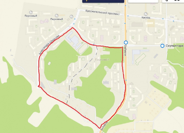 На обозначенном участке справа от пунктирной линии будет сквер, а слева обустроят пешеходную экотропу
