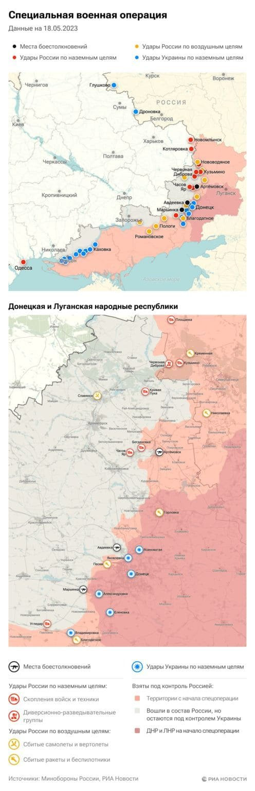 Свежие данные о специальной военной операции России на Украине на сегодня, 19.05.2023