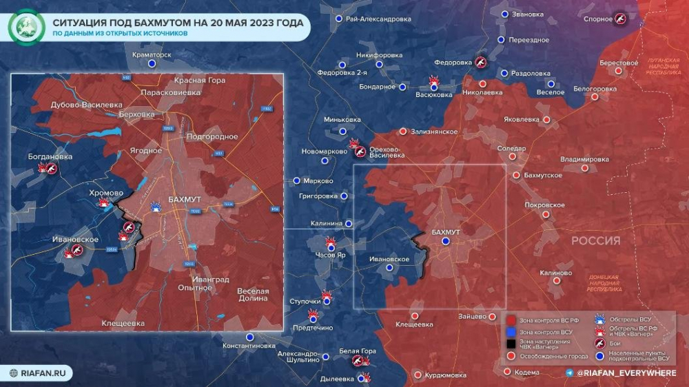 Карта боевых действий в Артемовске: данные на сегодняшний день, 20.05.2023