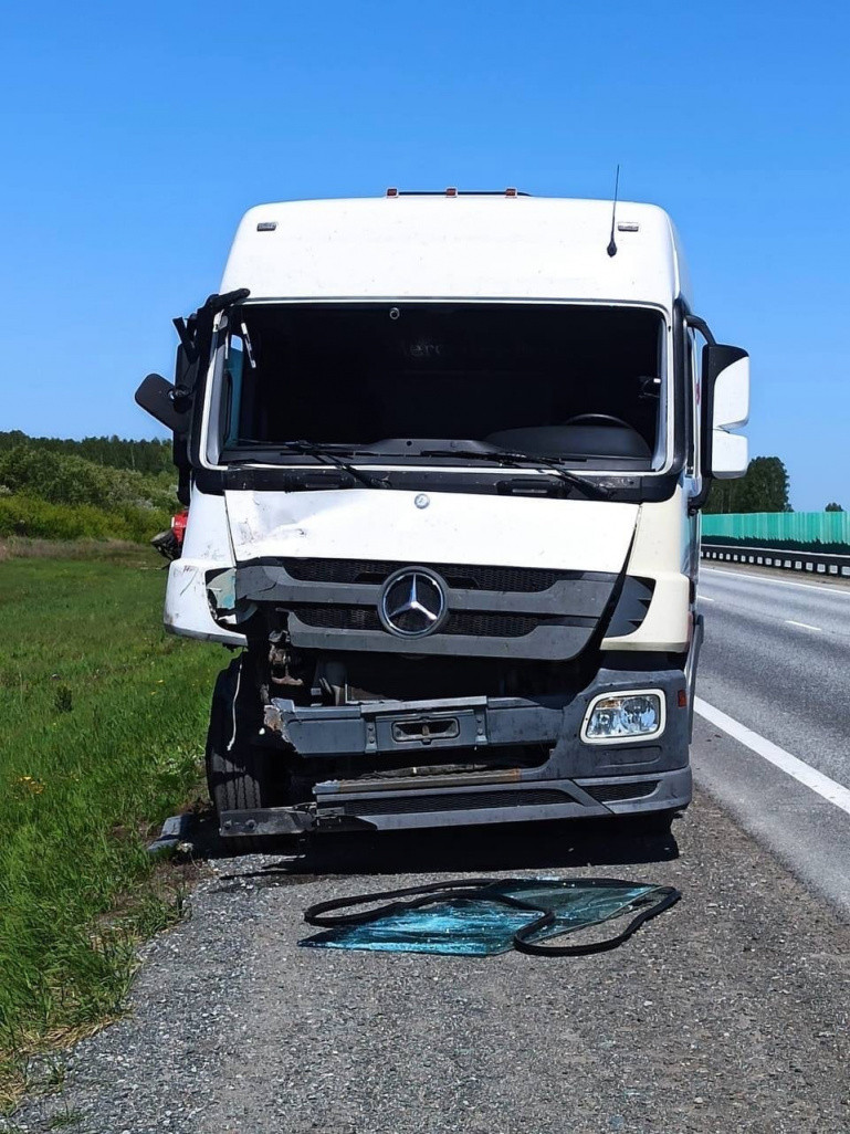 Трактор опрокинулся после столкновения с грузовиком на трассе под Челябинском