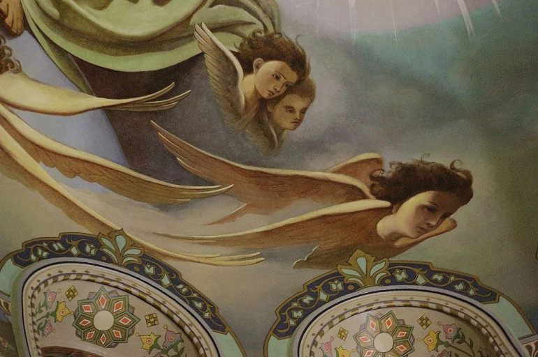 Внутри своды храма украшены росписью