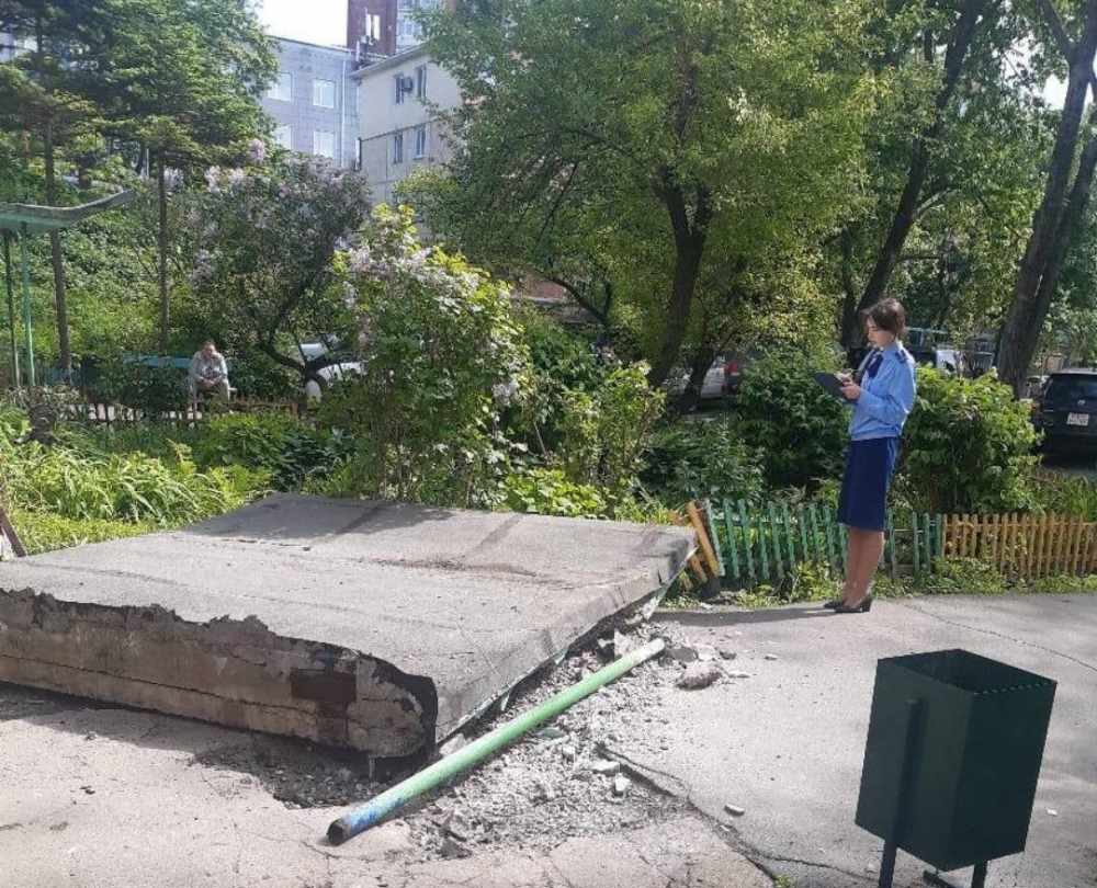 Козырек подъезда многоквартирного дома обвалился во Владивостоке. Фото: прокуратура Приморского края