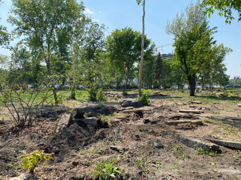 В челябинском Саду камней разобрали разрушенный фонтан и спилили старые деревья
