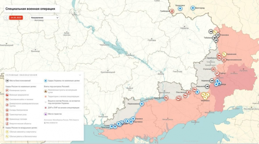 Карта боевых действий на Украине 24 мая: данные на сегодняшний о ситуации в зоне СВО