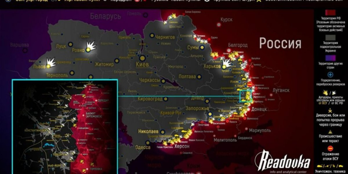 Артемовск (Бахмут) сегодня 25 мая 2023: новая карта боевых действий на Украине 25.05.2023. Новая карта Украины
