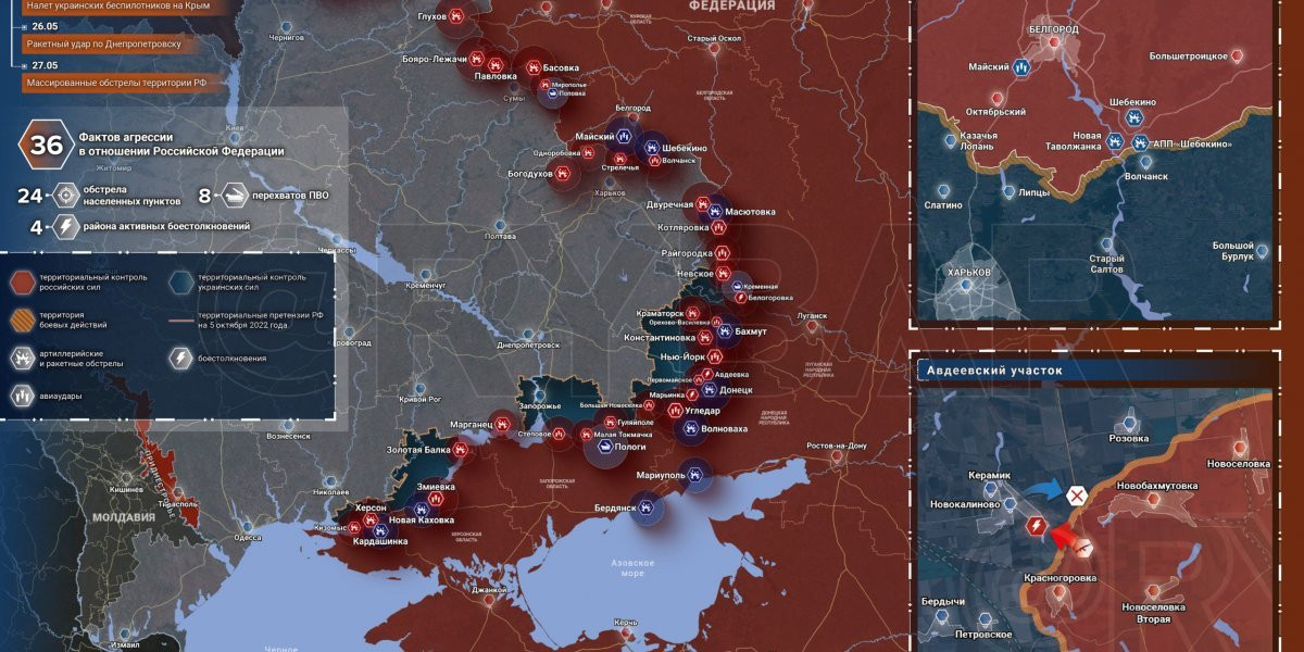 Карта боевых действий на Украине сегодня 29.05.2023 в реальном времени на сейчас