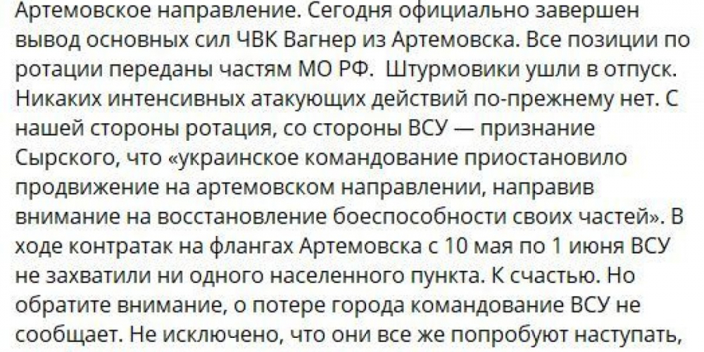 - Фронтовая сводка Семена Пегова на 01.06.23 г. — Варгонзо (WarGonzo последние новости):