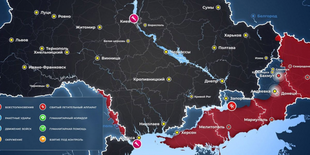 - Карта боевых действий на Украине, к утру 2 июня 2023г., от РИА Новости. Карта специальной военной операции.