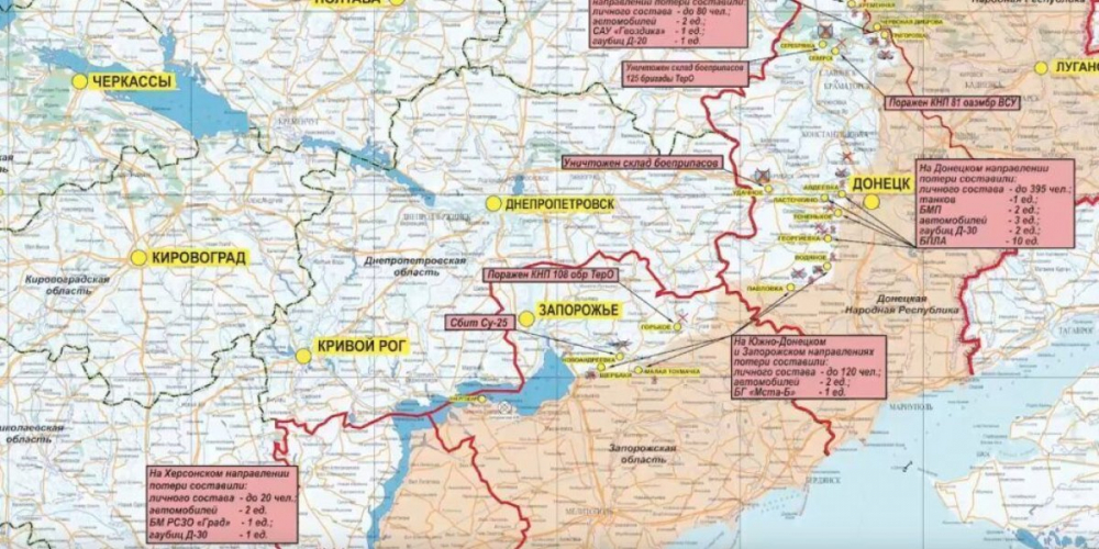 Кроме того, уничтожены пункты временной дислокации подразделений ВСУ в районе населенных пунктов Полтавка, Малая Токмачка и Великая Новоселка.