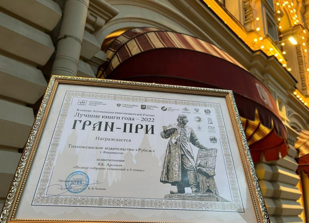 Список победителей XXXIII сезона конкурса “Лучшие книги года” (16+) огласила Ассоциация книгоиздателей России (АСКИ) в Москве. По информации “Интерфакса” (18+), обладателем Гран-при конкурса (“Издание, ставшее событием года”) стало Тихоокеанское издательство “Рубеж” за выпуск Полного собрания сочинений Владимира Арсеньева (6+), сообщает ИА PrimaMedia.