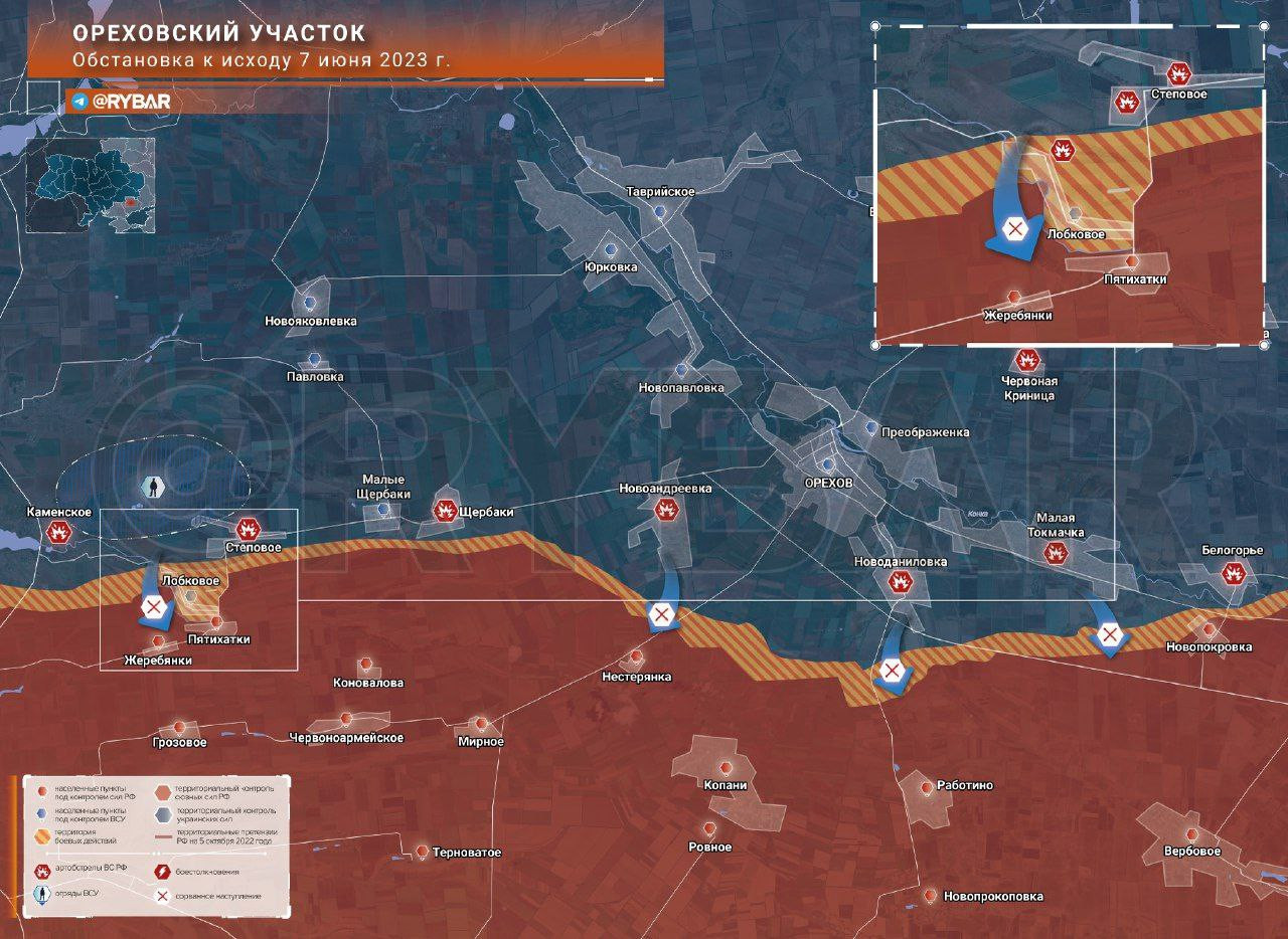 Карта боевых действий: Ореховский участок Обстановка к исходу 7 июня 2023 года