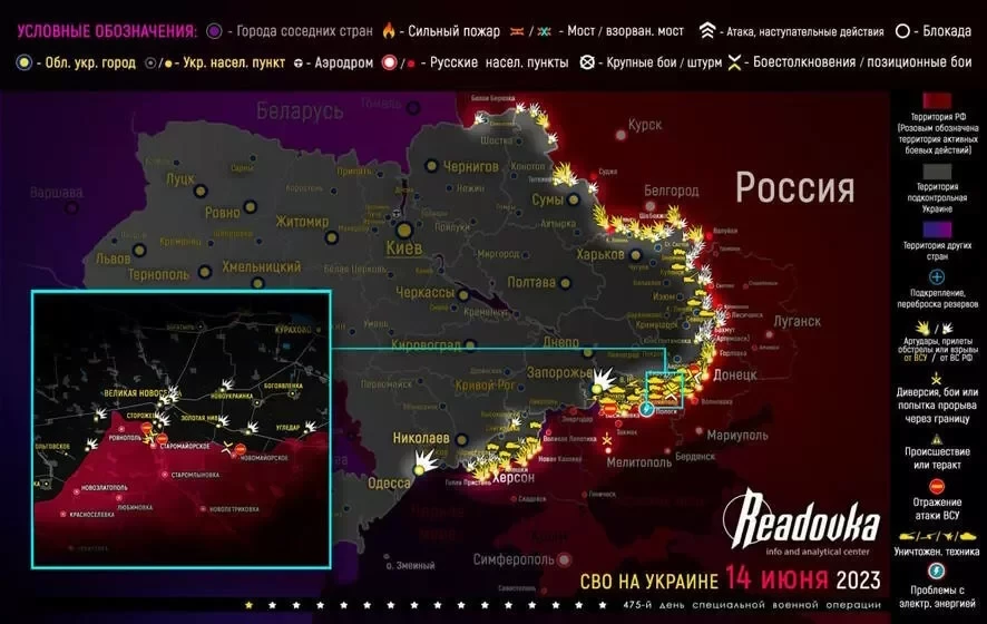Президент России Владимир Путин заявлял, что контрнаступление ВСУ началось 4 июня. 10 июня президент Украины Владимир Зеленский подтвердил, что украинские войска ведут контрнаступление.