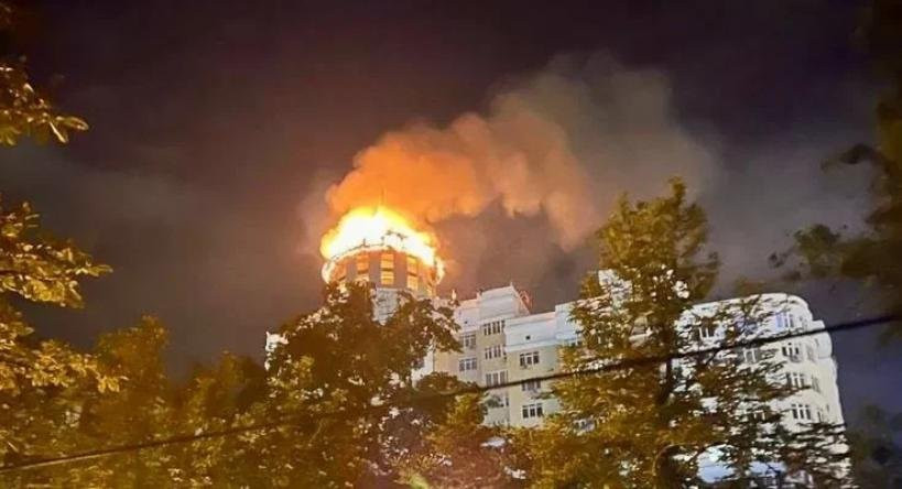 В данный момент осуществляется разбор и проливка конструкций. В результате возгорания на крыше многоэтажки пострадавших и погибших нет, добавили в главке.