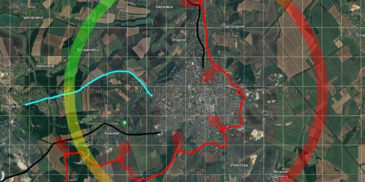С запада только дорога на Константиновку частично находится под огневым контролем ЧВК «Вагнер». Трасса на Часов Яр полностью свободна для перемещения и на данный момент прямой угрозы ее блокирования для ВСУ нет.