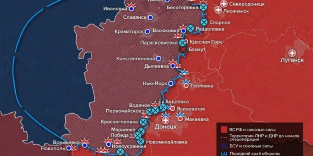 Бойцы ЧВК «Вагнер» продолжают штурмовать Парасковиевку. В Артемовске идут бои на северных окраинах города и в районе Мариупольского кладбища. Также ВС РФ давят в Красном и в Ступочках. На данный момент «оркестрантами» полностью перерезаны прямые трассы на Северск и Славянск. Дорога на Константиновку частично находится под огневым контролем российской армии.