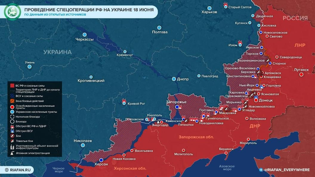 Свежую информацию о ситуации в зоне специальной военной операции представило издание ФАН. На карте боевых действий отражены главные события по состоянию на 18 июня.