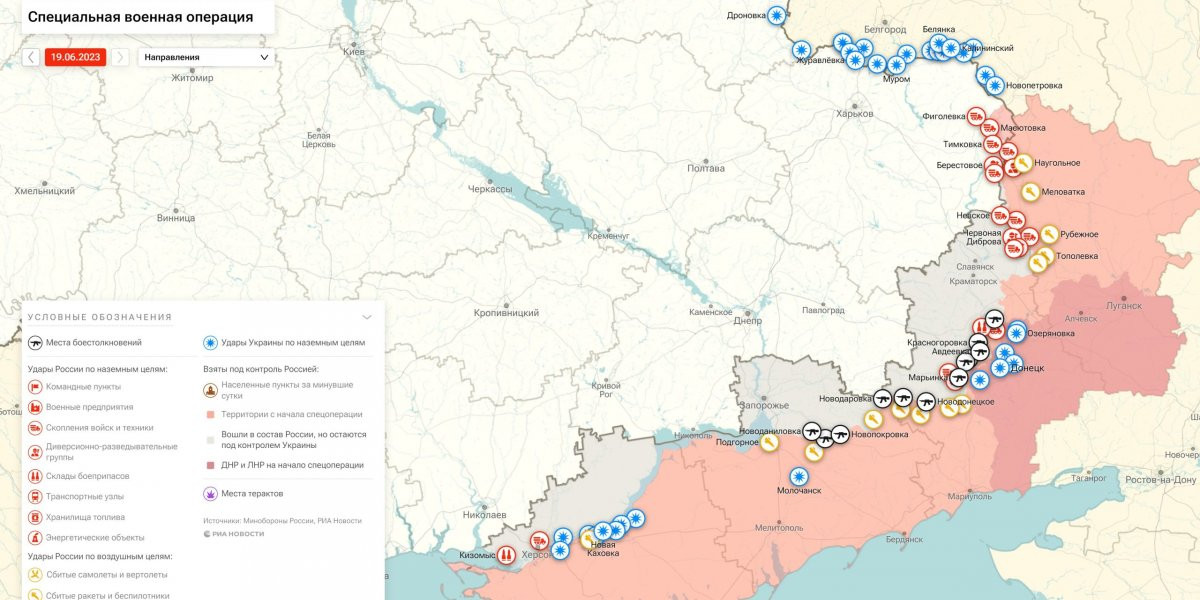 - Карта военных действий на Донбассе сегодня 19 июня: обстрелы Курской области, места боёв и обстрелов на сегодня 19.06.2023, обстановка в ЛНР и ДНР