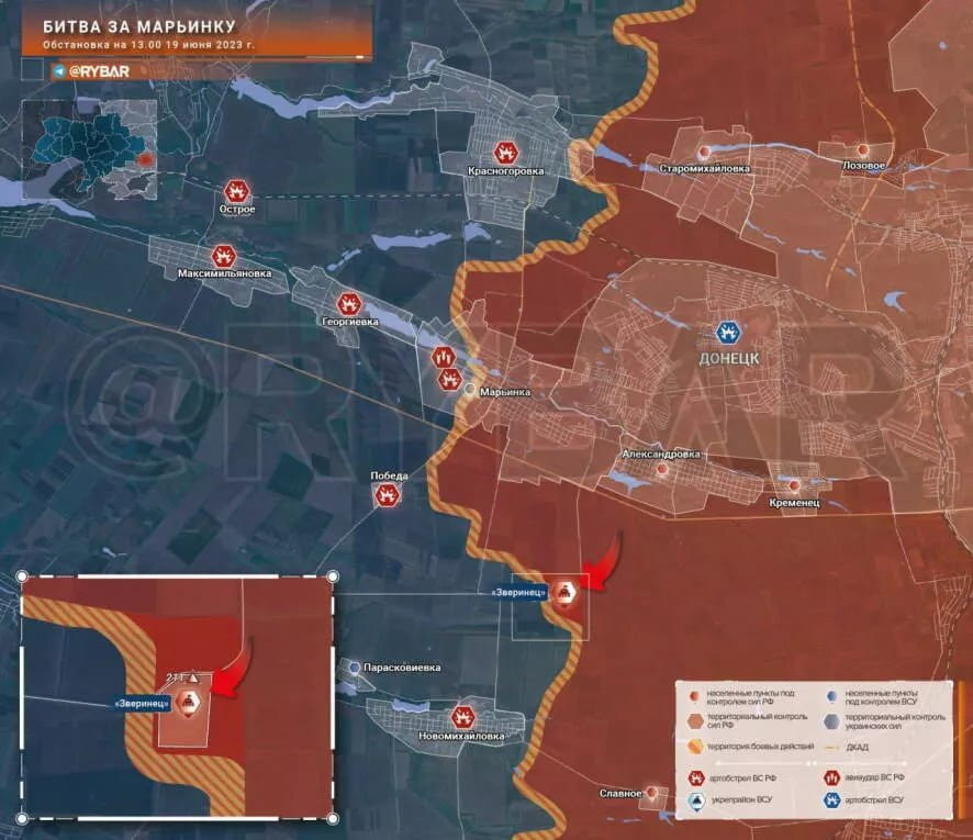 Боевые действия за Марьинку 19 июня: обстановка по состоянию на 13:00