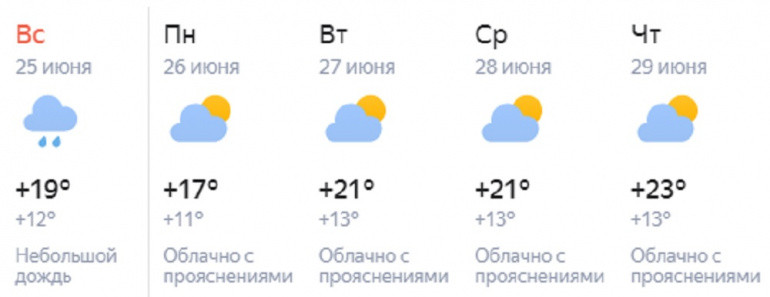 Судя по прогнозу регионального Гидрометцентра, в выходные столбики уличных термометров в Челябинской области наконец перешагнут отметку +20 градусов. А в четверг, 22 июня, пройдут небольшие дожди, и по-прежнему будет прохладно.