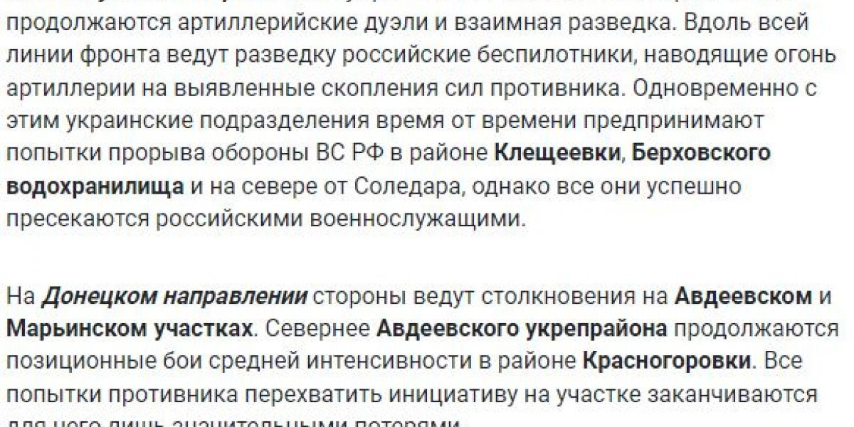 ВСУ снова пытались штурмовать позиции ВС РФ в районе Соледара ДНР, но все атаки также были отбиты российскими военными, а противник понес крупные потери.