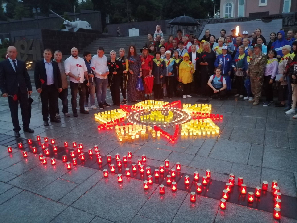 У Вечного огня на Корабельной набережной Владивостока волонтеры составили из десятков разноцветных свечей изображение ордена Великой Отечественной войны и надпись “Помним”. Среди тех, кто собрался в этот вечер на набережной, были участники молодежных объединений, “Серебряные волонтеры”, представители органов региональной и муниципальной власти, общественники и активисты.