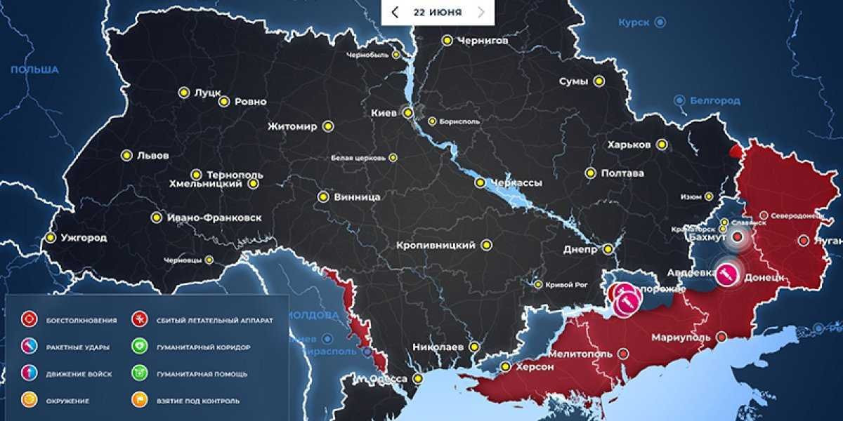 Карта боевых действий на Украине на сегодня, 22 июня 2023 года
