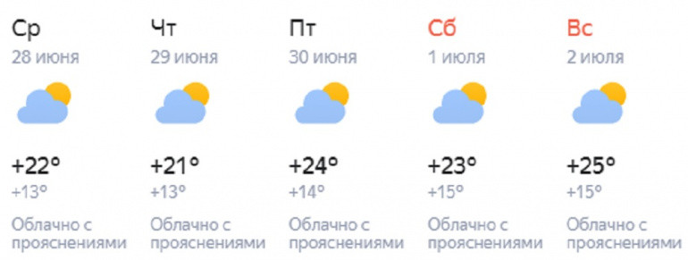Прогноз для Челябинска мало отличается: днём сегодня и в воскресенье — до +19, в субботу — на градус теплее. По ночам ожидается от +8 до +11. Небольшие дожди возможны сегодня и в воскресенье днём, остальное время будет стоять переменная облачность. По данным долгосрочного прогноза от сервиса «Яндекс.Погода», на следующей неделе ненадолго возможно потепление аж до +25 градусов.