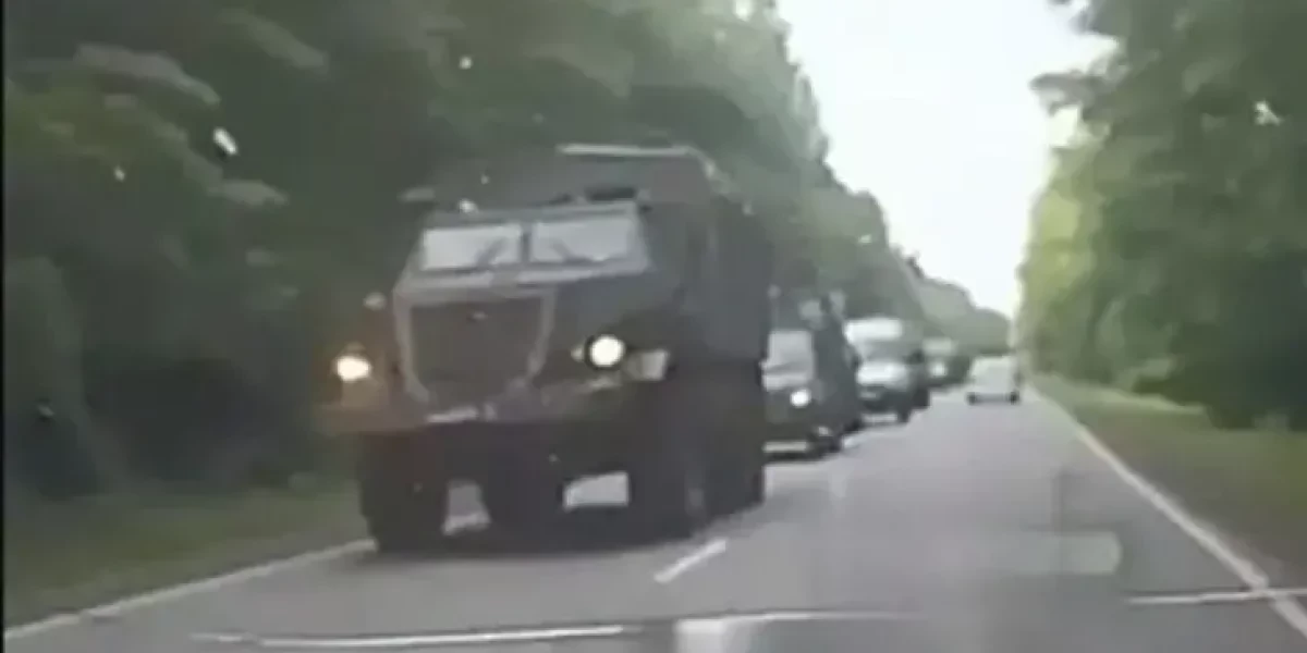 На стороне Пригожина — скорость. Колонны Вагнера едут вдоль трассы на легких автомобилях и бронемашинах, а для перевозки тяжелой техники используют специальную колесную технику.